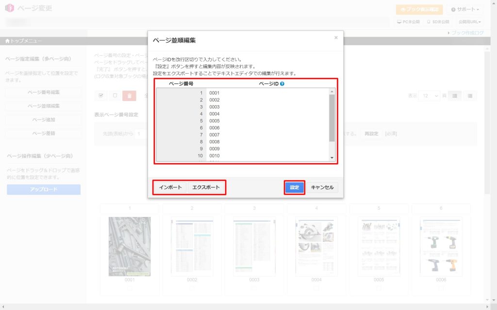 2.ページ並順編集ウィンドウ内のテキストボックスで編集の上